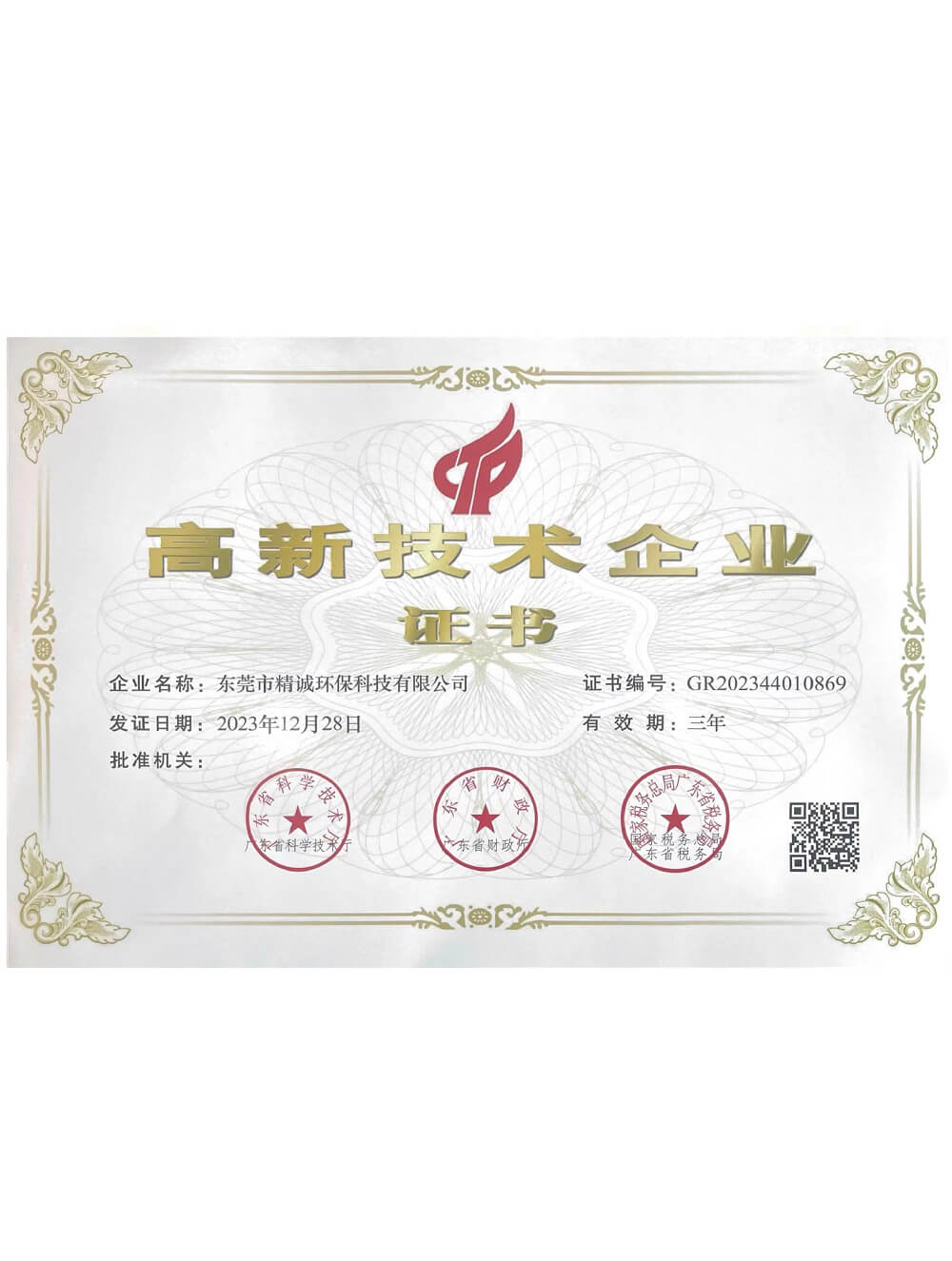 高新技術(shù)企業(yè)證書